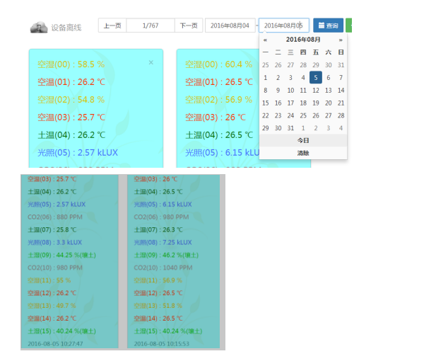 清單明細(xì)式顯示方式,可以直觀地查看各個(gè)環(huán)境因素參數(shù)在某個(gè)時(shí)間點(diǎn)的監(jiān)測(cè)數(shù)據(jù)。