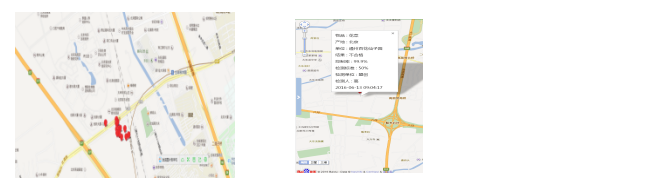 6、GIS地圖生成:利用檢測(cè)設(shè)備內(nèi)置的GPS模塊,實(shí)現(xiàn)衛(wèi)星定位數(shù)據(jù)捆綁測(cè)試數(shù)據(jù)信息,實(shí)施GIS地圖定點(diǎn)監(jiān)控個(gè)檢測(cè)點(diǎn)的位置信息,監(jiān)測(cè)者可在其衛(wèi)星定位圖標(biāo)上點(diǎn)擊位置坐標(biāo)查看該檢測(cè)點(diǎn)測(cè)試數(shù)據(jù)相關(guān)索引信息。
